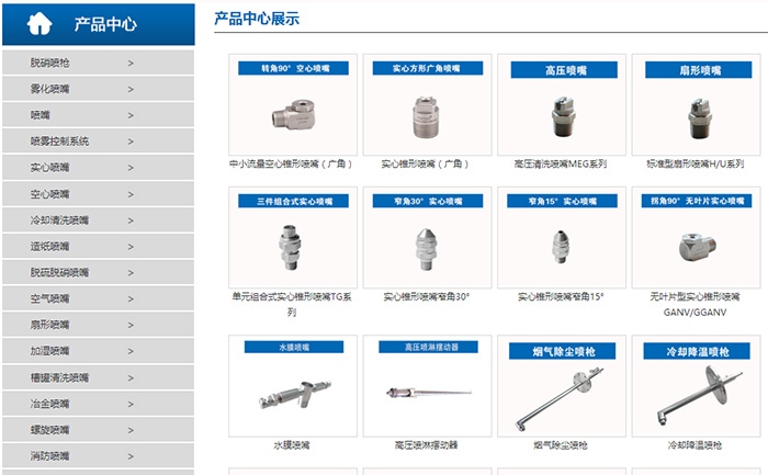 工业喷嘴在冶金行业广泛应用,燕尾槽系列喷嘴广泛的应用于热轧线钢板,高压水除磷环节!空气喷嘴及空气吹扫喷梁广泛的应用于板坯吹扫冷却;扇形喷嘴、实心喷嘴用于连铸连轧;以及除磷喷嘴在除磷线广泛使用!