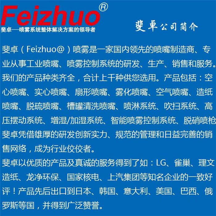 脱硝喷枪的更多选型资料及详细信息,请您联系上海斐卓喷雾系统公司索取!