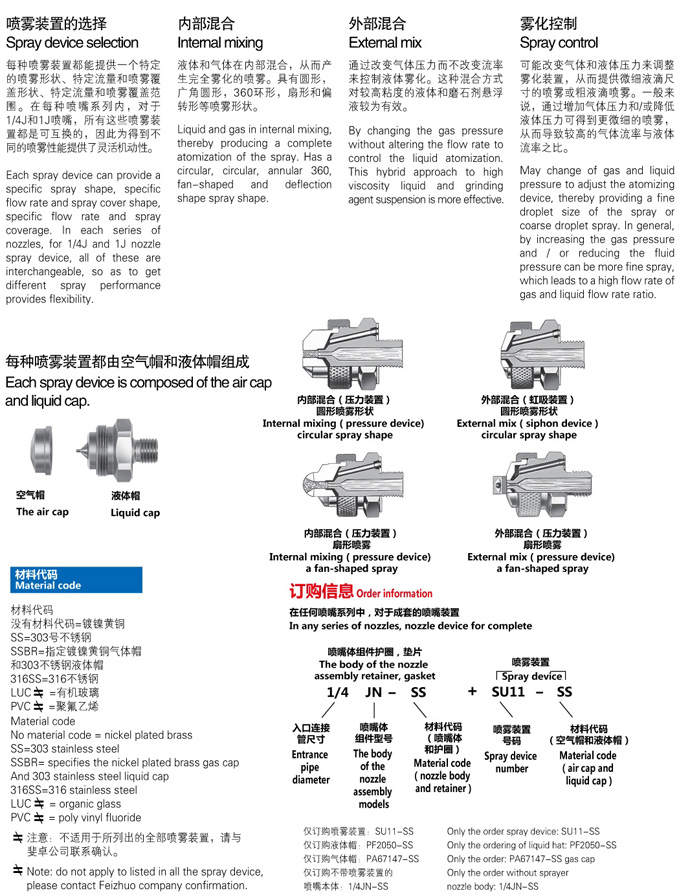 标准空气雾化喷嘴选项包括实现自动化操作的气缸、清除/断流针、虹吸/重力传送装置、内部或5种喷雾形式和数百种流量。